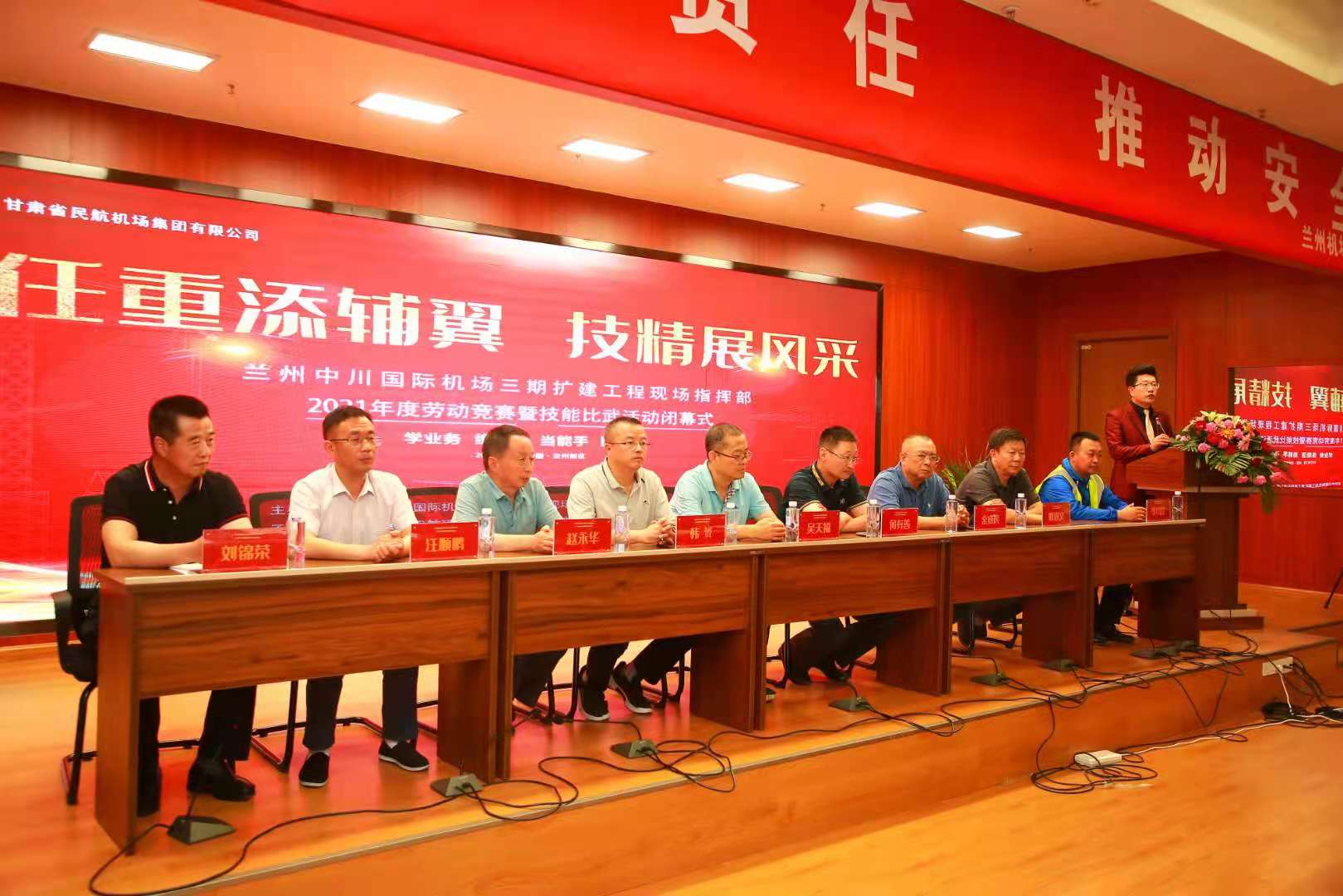 7月28日下午,蘭州中川國際機(jī)場三期擴(kuò)建工程現(xiàn)場指揮部舉辦了2021年度“勞動(dòng)競賽暨技能比武”活動(dòng)頒獎(jiǎng)典禮。蘭州中川國際機(jī)場三期擴(kuò)建工程現(xiàn)場指揮部黨委副書記、常務(wù)副指揮長、黨委委員、總會(huì)計(jì)師,以及我司副總經(jīng)理等領(lǐng)導(dǎo)出席并參加了頒獎(jiǎng)典禮。大會(huì)彰顯了本次技能大比武的進(jìn)取精神,通報(bào)了比武結(jié)果,與會(huì)領(lǐng)導(dǎo)為獲獎(jiǎng)人員及獲獎(jiǎng)單位頒發(fā)獎(jiǎng)牌及獎(jiǎng)品。