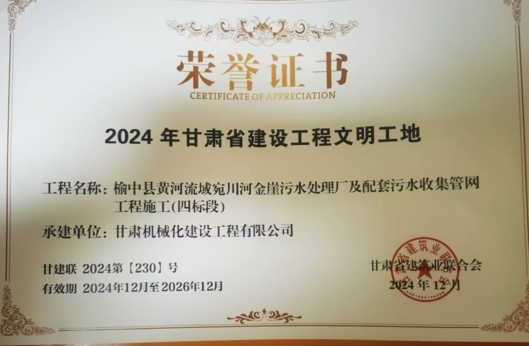 榆中縣黃河流域宛川河金崖污水處理廠及配套污水收集管網工程施工-2024 年甘肅省建設工程文明工地